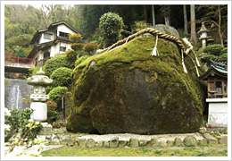 江戸期の俳人・文人や中村代官、さらには諸大名が休憩した茶屋跡があり、その茶屋跡の傍らに「木魚石(もくげいし)」があります。昔、子供にお乳を飲ませる頃になると、この石から木魚の鳴る音がしたことから、その呼び名がつけられたといわれています。この木魚石と、街道下にある蜘蛛石、長持石の三つの石を合わせて「枚岡三石」と言われています。